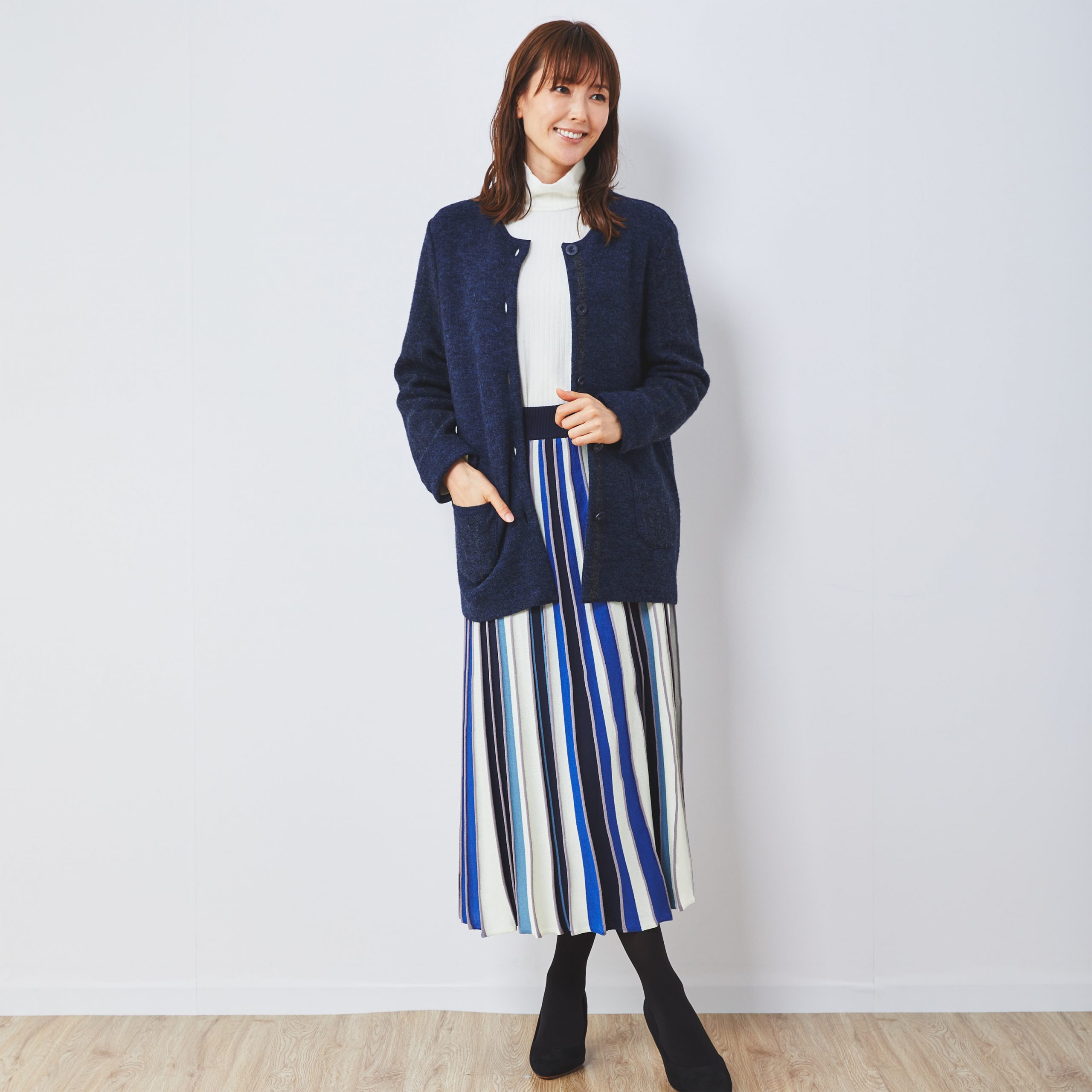ロングカーディガン 13,200円(税込) ボーダーカットソー 11,000円(税込) 旬のロングカーディガンはボディラインをすっきりとスタイリッシュに魅せてく...