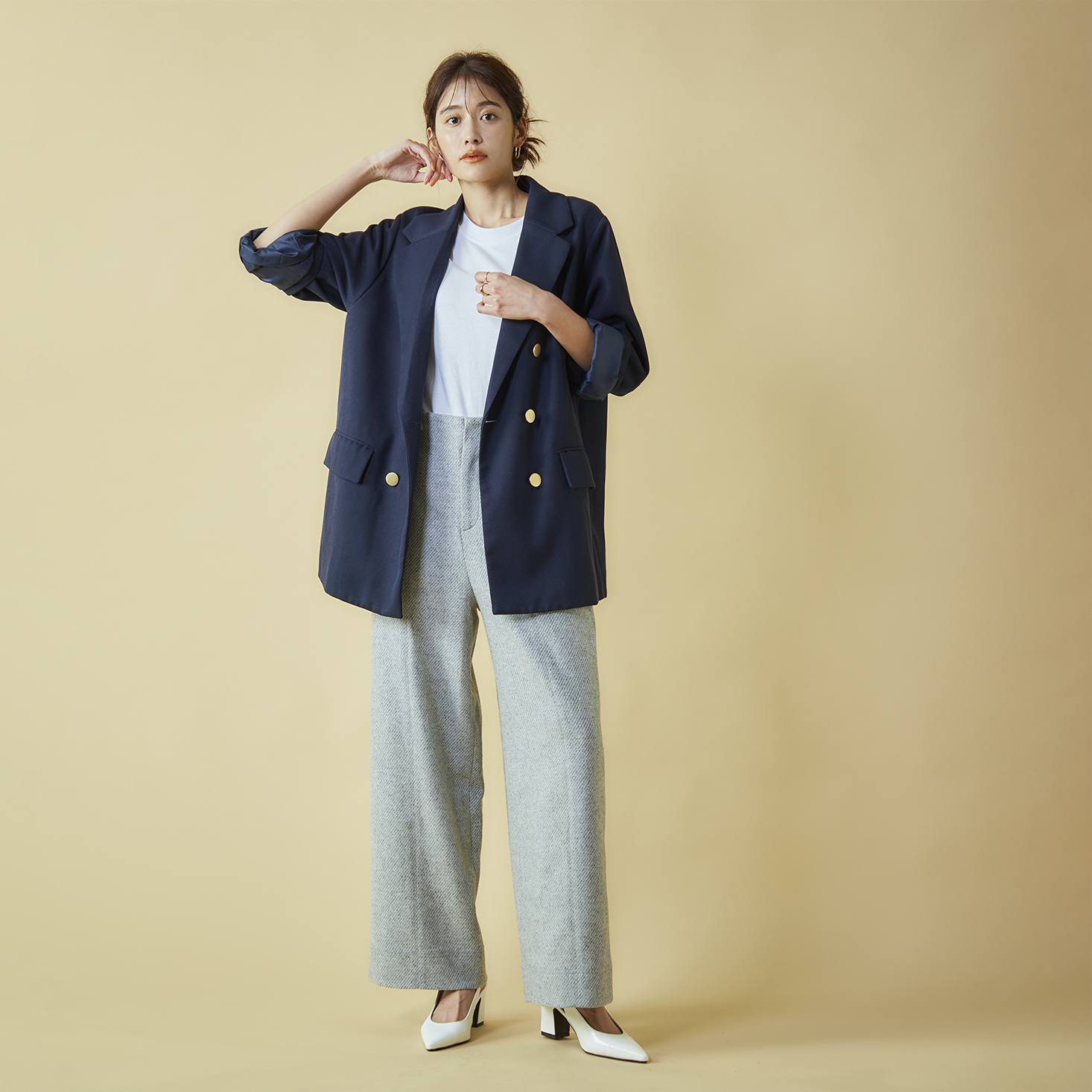 ワイドパンツ(612HE504)¥24,200 (税込)発売中。 ライトグレー・カーキ・ブルーの3色展開 サイズは、2(S)~8(LL)の4サイズ ウール混ツイ...