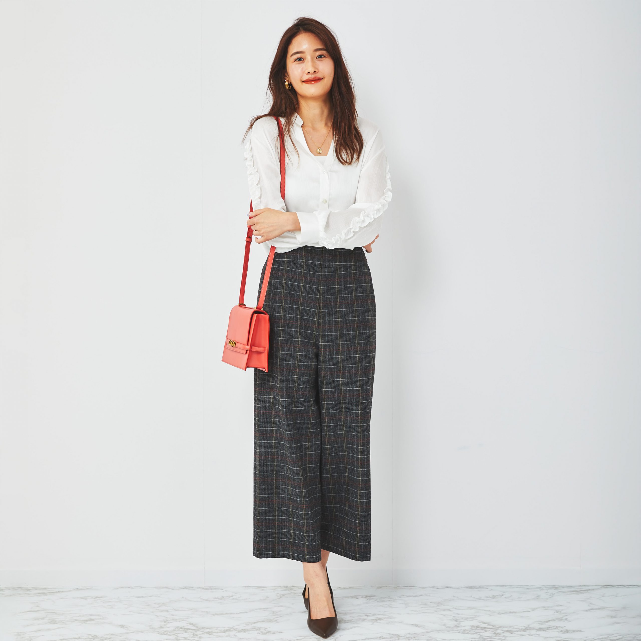 ワイドアンクルパンツ ¥19,800 (税込)発売中 ベージュ・ネイビーの2色展開 2(S)~8(LL)の4サイズ エコツィードのワイドパンツ。 ウエスト部分は...