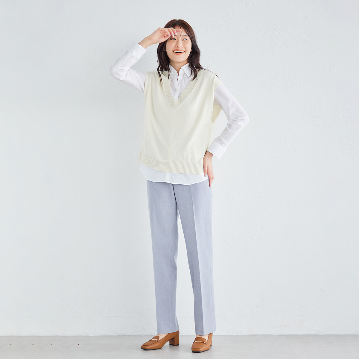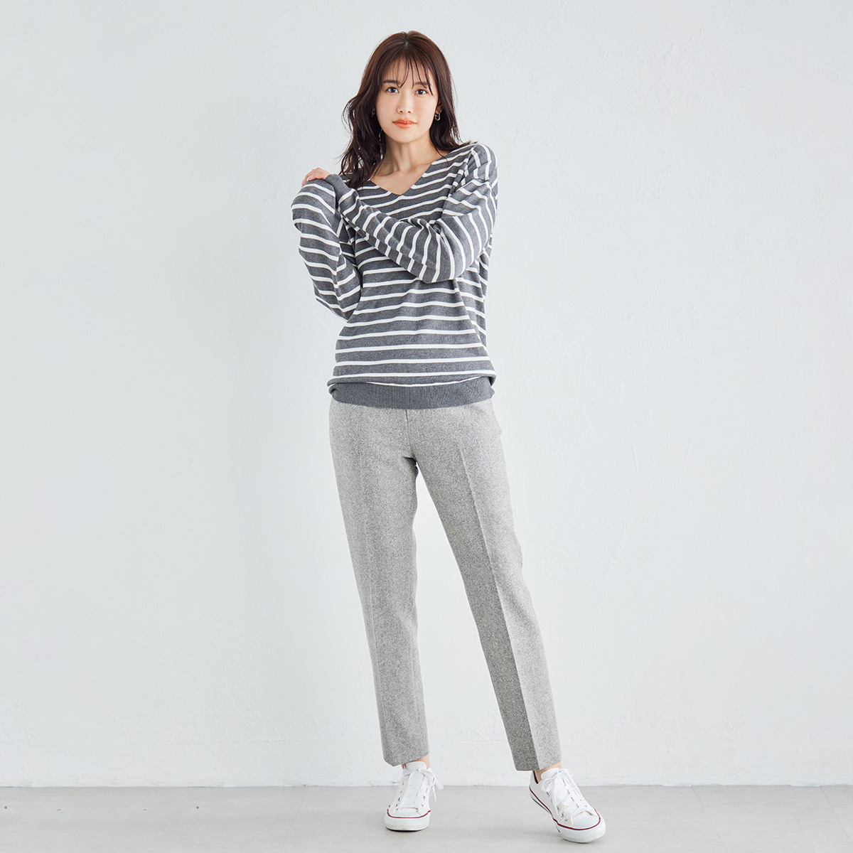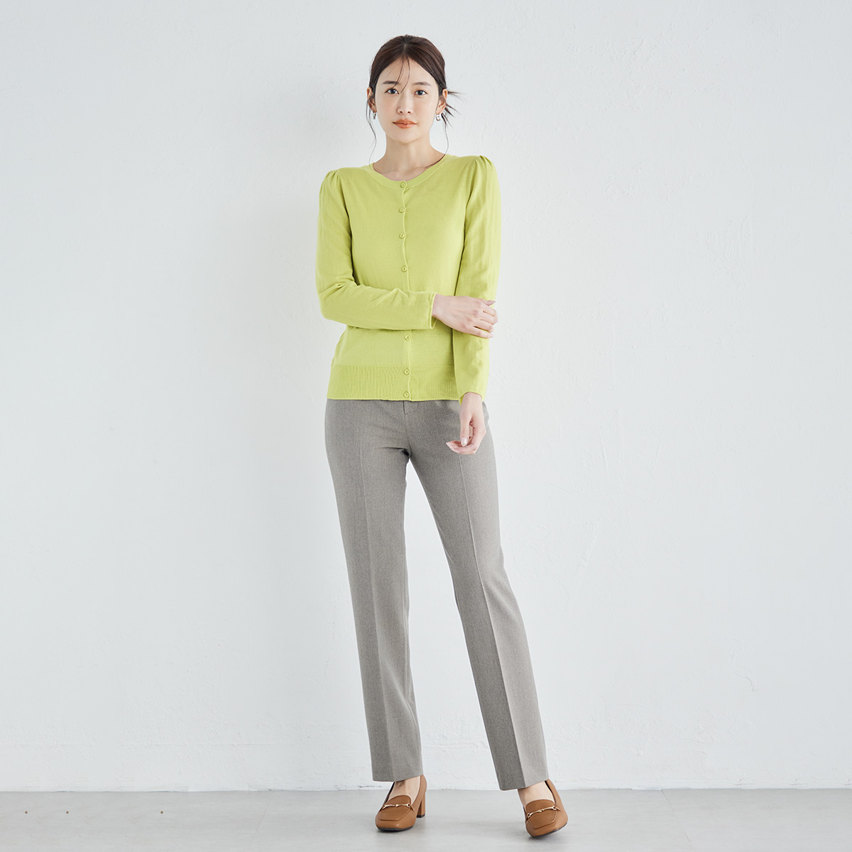 ストレートアンクルパンツ(612JE108)¥24,200(税込)発売中 ライトグレー・グレー・ブラウン 5~15の6サイズ 楽なのにきれいなシルエットのウール...