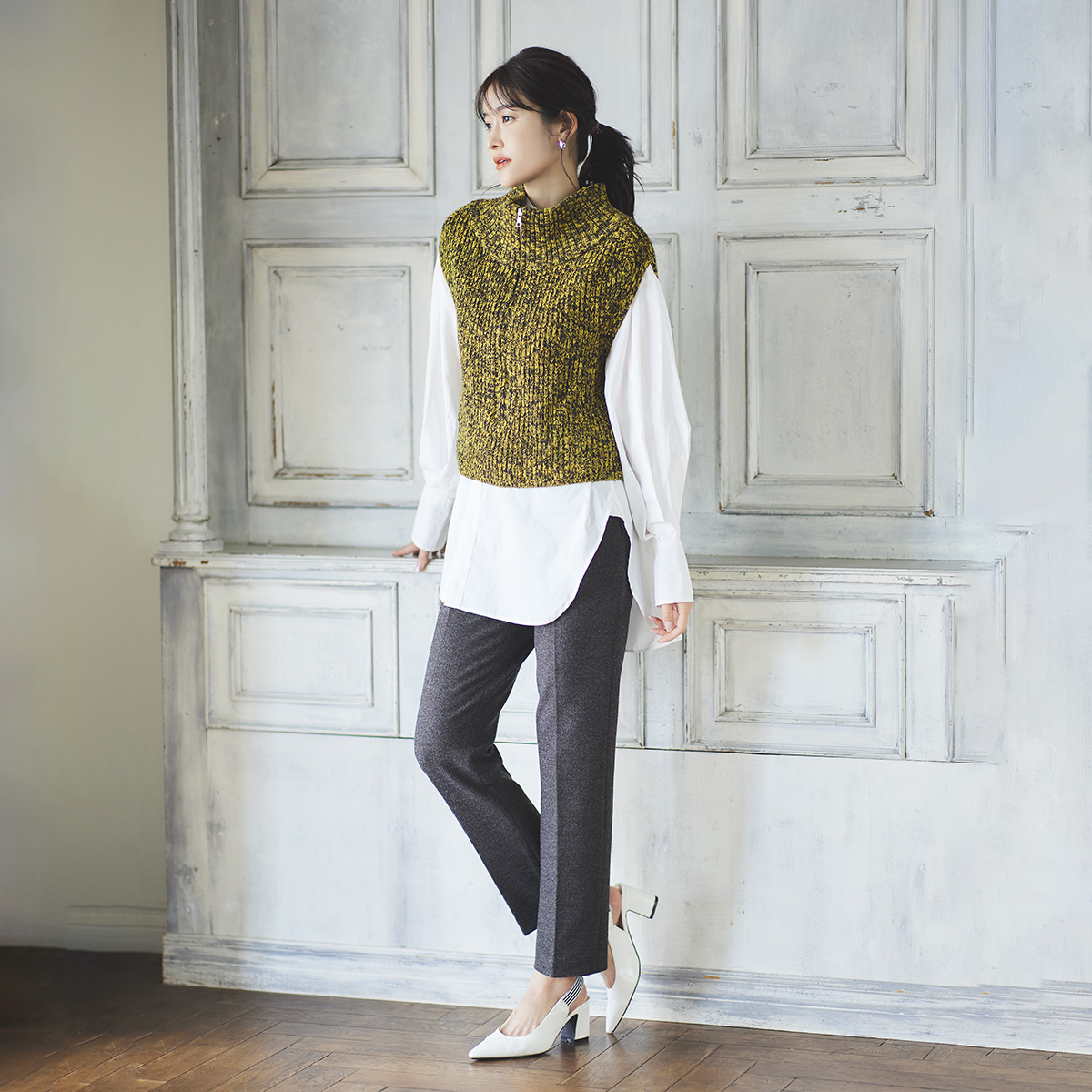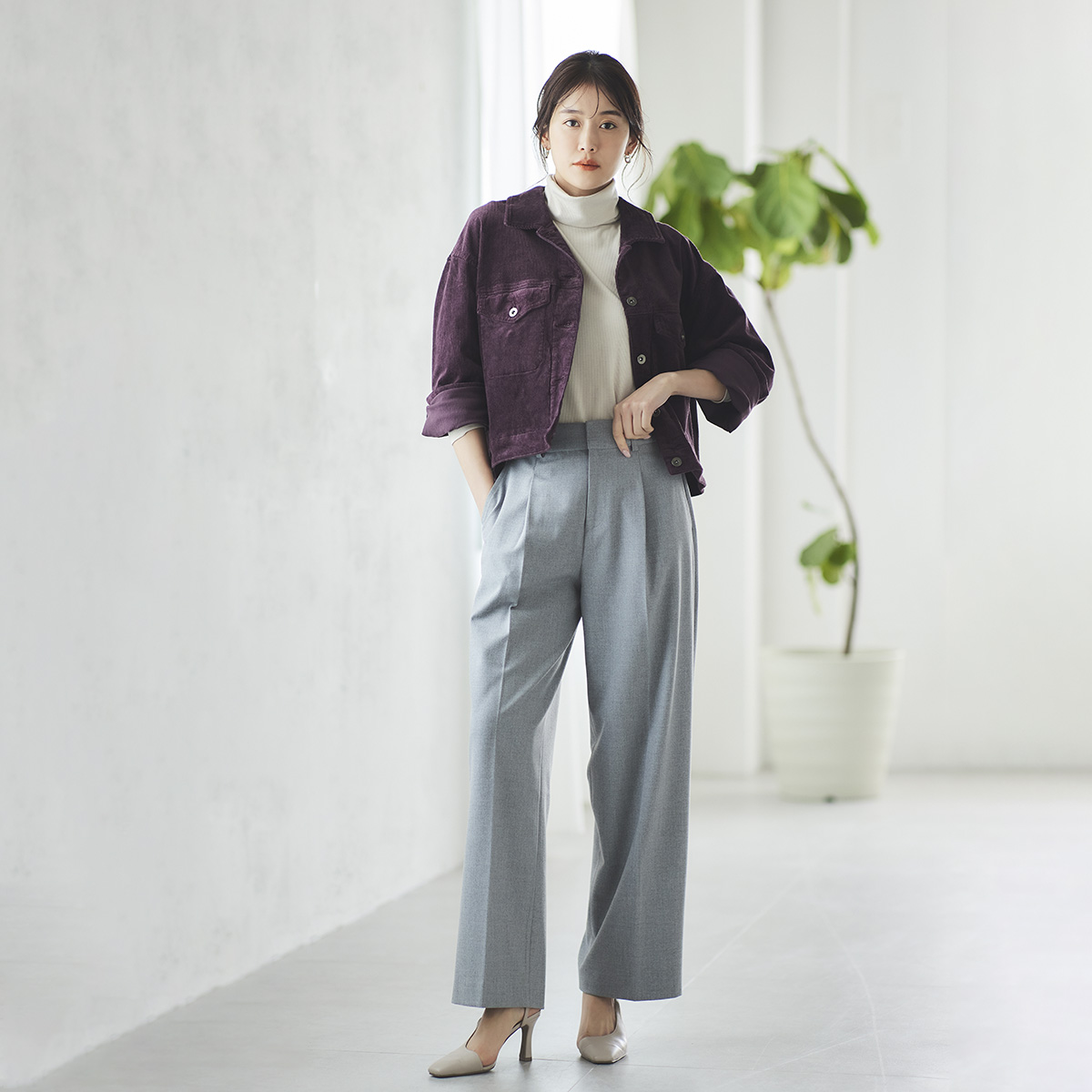 ストレート2レングスパンツ(612JC801.C802)¥19,800(税込)発売中 2レングスパンツは、身長158cm(レギュラー)150cm(プチ)の身長に...