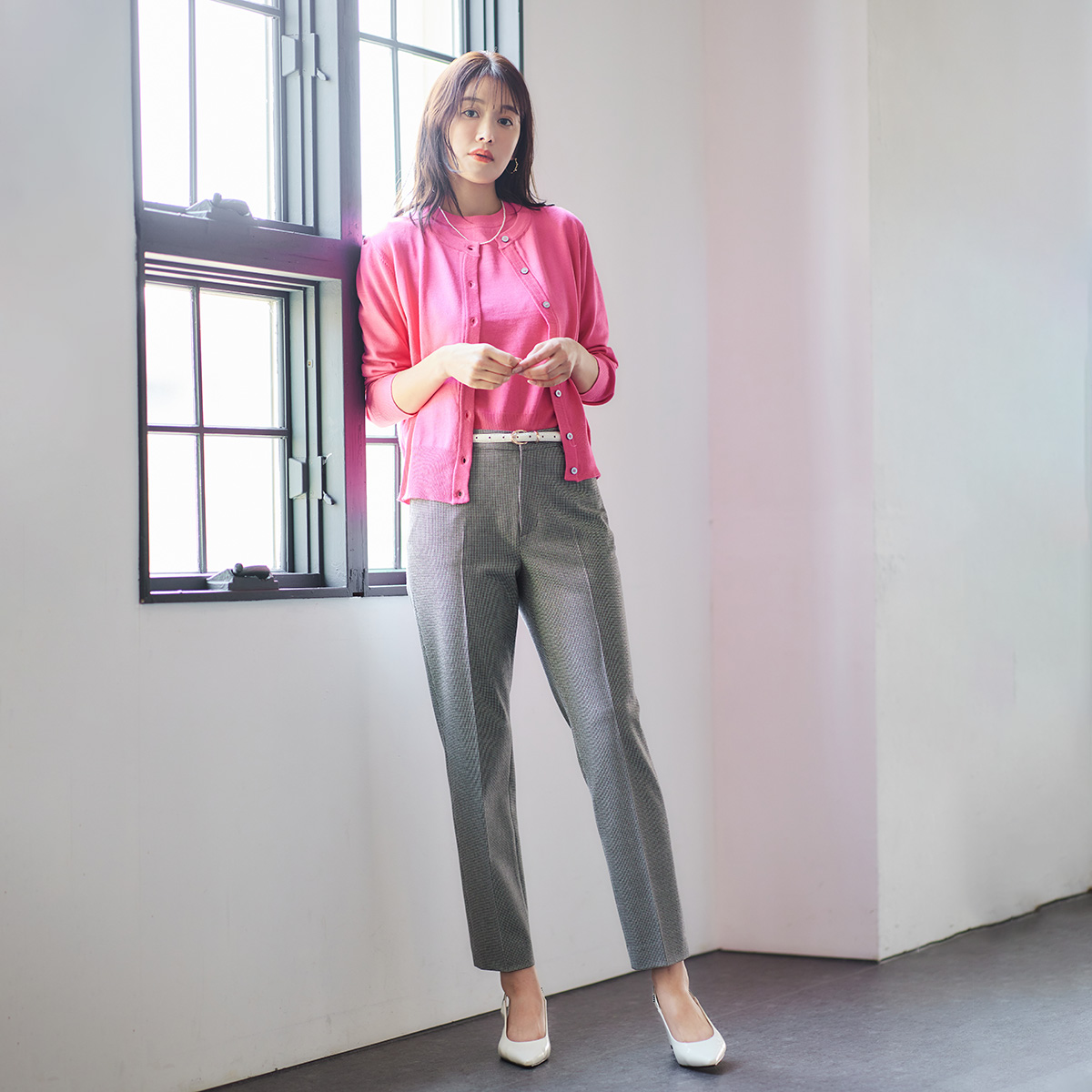 ストレートアンクルパンツ(612JC104)¥19,800(税込)発売中 キャメル・チャコールグレー・ブラック・千鳥柄 5~17(千鳥柄は15号まで)の7サイズ...